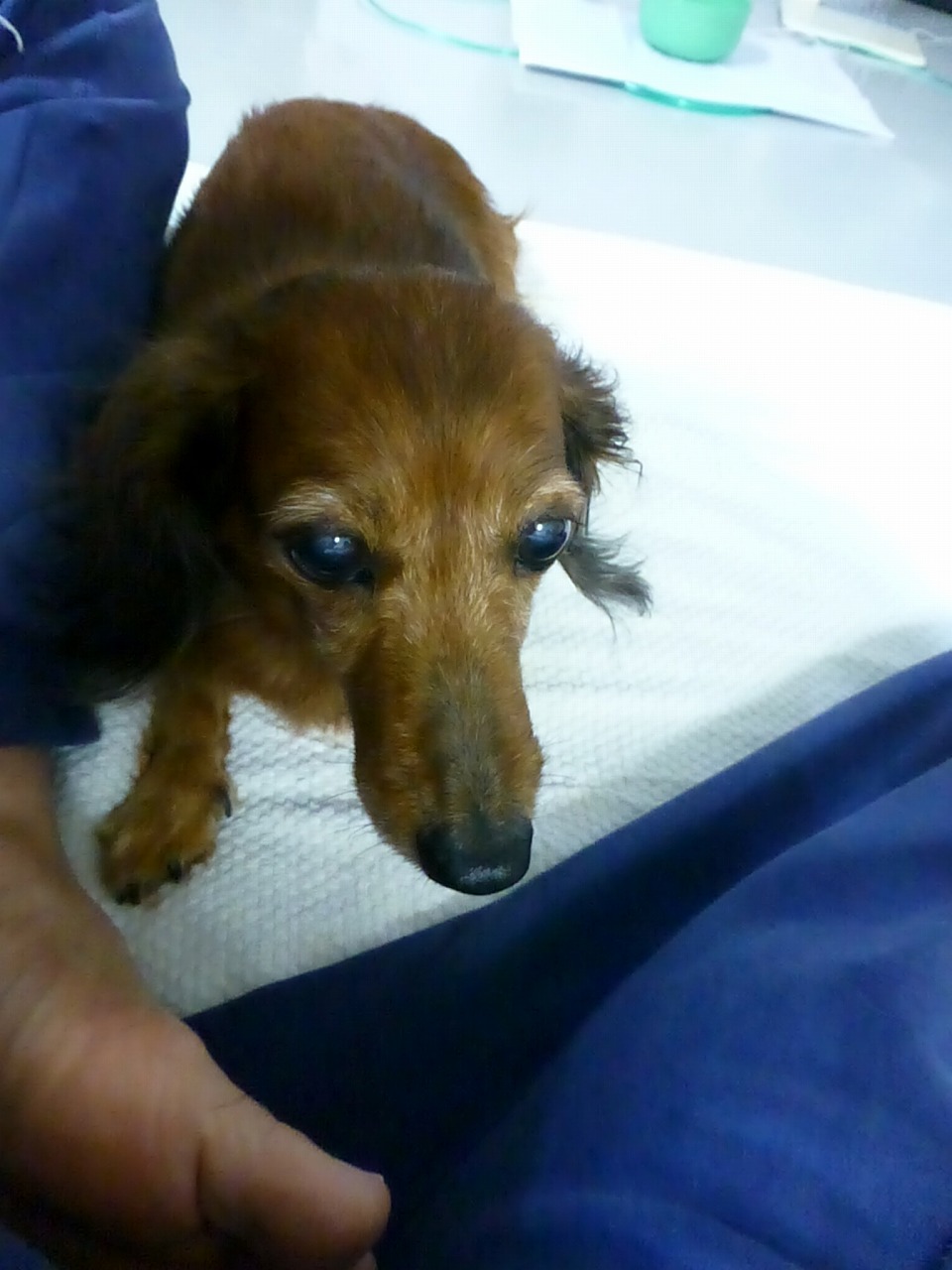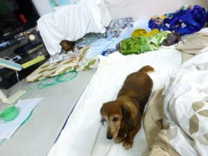 直後の7:35に、小生のところに足をなめに来たときの写真です。動画撮影してますが。。いつもの勢いないですね。目もうつろ。。