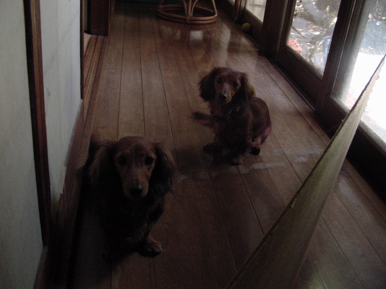 平成16年4月25日の縁側のちびたとセラですね。。板で境を作ってます。。セラ、4歳頃のはずだけど、年取ってるなあ。顔に白髪はないですね。ちなみに、奥がちびたですからね。。