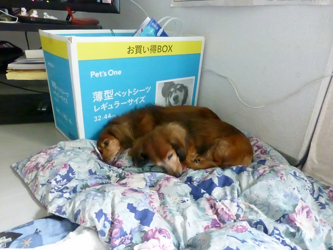去年の今日、ふたり。。。この、位置関係が冬場は定番でした。。セラが、箱のそばに寝ていると、後からちびたが箱とセラの間に割り込んで寝るんで、このような窮屈な格好になります。。久しぶりですね。。暑がりちびたがこの位置に寝てるとなると。。この日は、クーラーが利いてたのかなあ。。。
