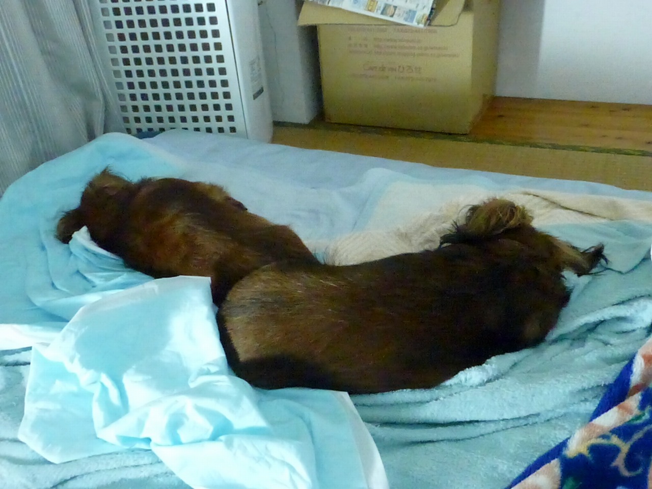 お昼と夜10時ころの二匹。。。。あたりまえですが。。いつも一緒。。。
