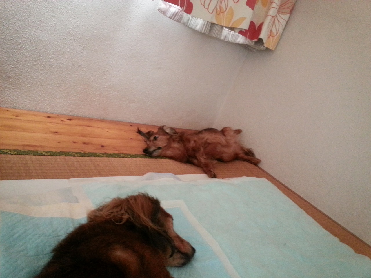 今日もちびたは、お気に入りの板のところで寝てますね。。お腹を上に向けて冷やしてるのかな。