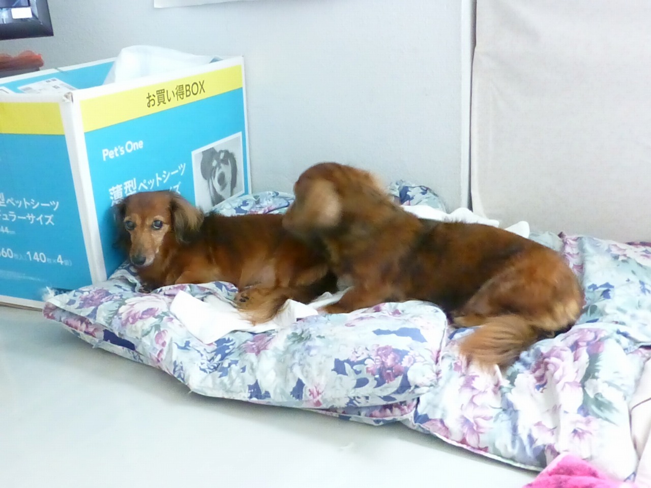 今日は、トムが現在の主治医のところに初めて受信した日のようです。問診表を書いてるんでたぶんそうでしょう。。ちびたと違って、トムは静かです。。。。ご主人が、問診表間違って書いてないか、トムが心配して見てますね。。