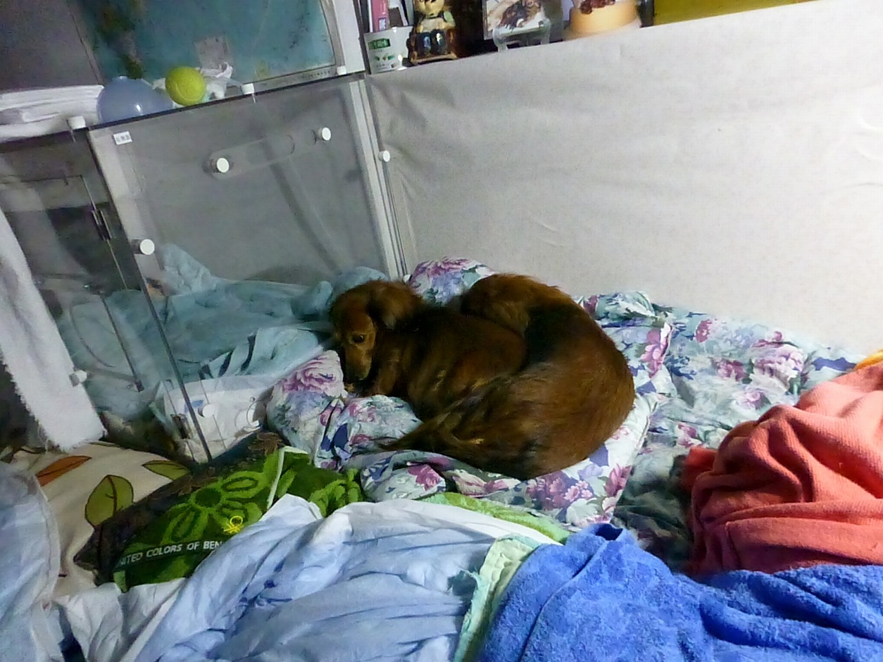 22:20..今日は、ここまま外で寝たのかなあ。。ハウス内は。。寂しいんでしょうね。久しぶりの仰向けの寝相。。暑いのかもしれません。。