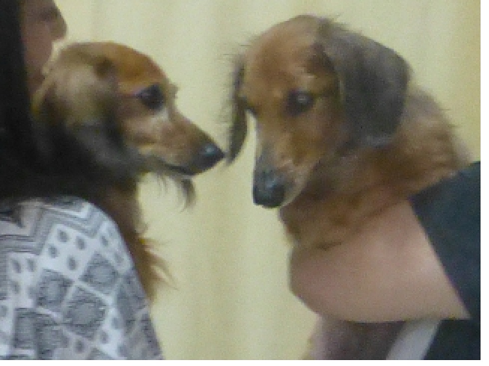 ちびたのもう一匹の兄ちゃんマックスが、今日、突然来ました。。ちびたにそっくりでウルウルしてしまいました。ちびたと同じで、鼻が短い、隣の鼻が長いトムと比べてみるとよくわかりますね。(角度が違って、わかんないか)。I福さん、来院、ありがとうございます。今年に入って、マックスの家の前の道路走っているときに、門を見たら、家の中を覗いているダックスを見かけたことがあるんです。マックスだったのかなあ。と、思い悩んでいたのですが。。そうだったんですね。現在は、特に大病もしてないみたいなんで、安心しました。。ほんと、ちびたそっくり。。飼い主さんの許可もらってないので、トムとマックスのところだけ切り取って掲載しました。右は、子供の頃のマックス、やはり、ちびたにそっくりですね。キョンシーポーズだ。。。(⌒○⌒;あはは