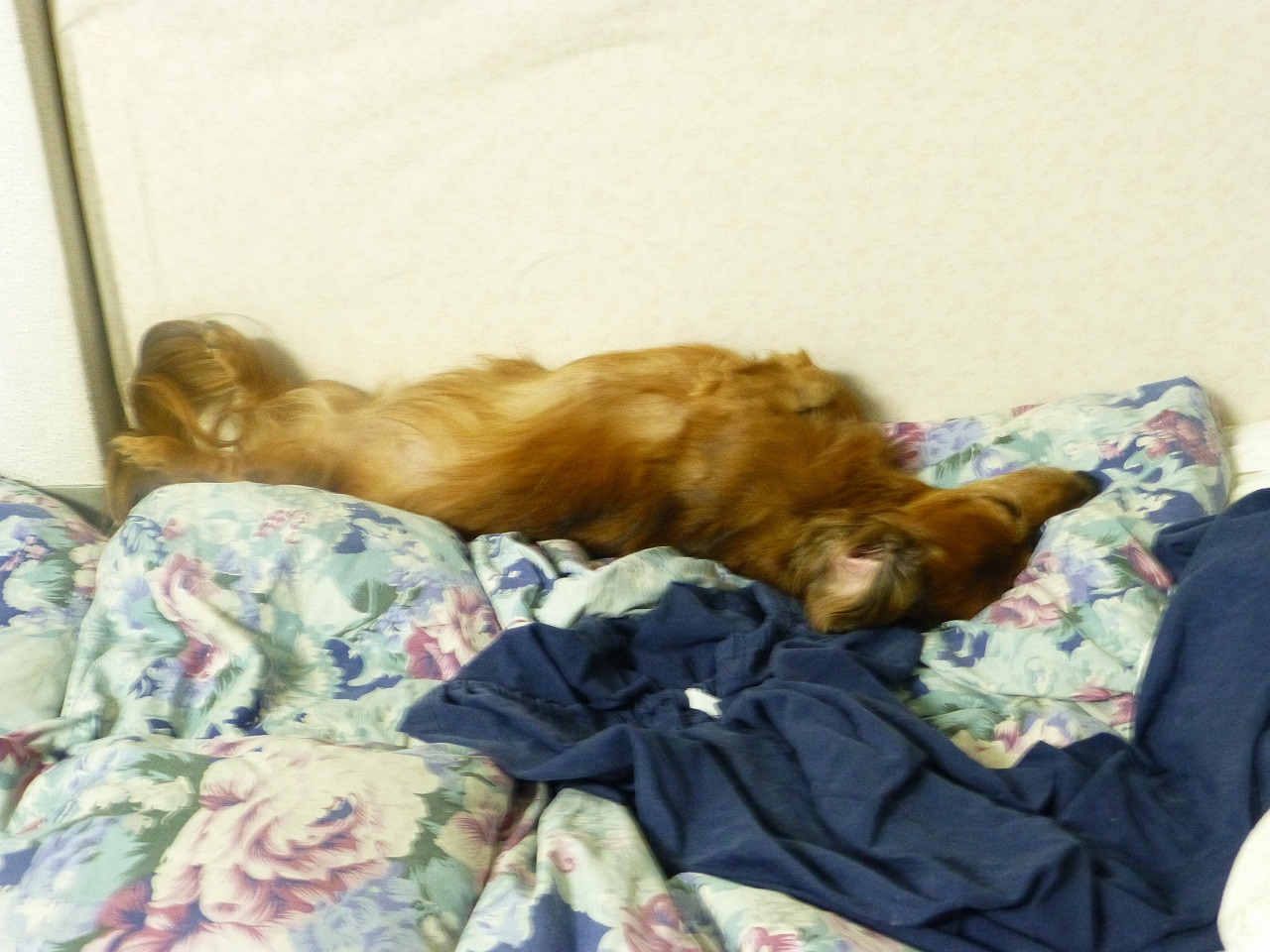 この寝てるのたぶんちびたでしょうね。この時期、ばあさんが入院してました。ばあさんがいないときのちびたの行動が、メールでカキコされてますね。夜中、ばあさんが入院していないのに、どうやらばあさんの部屋の前に行って、声掛けしていたようですね。