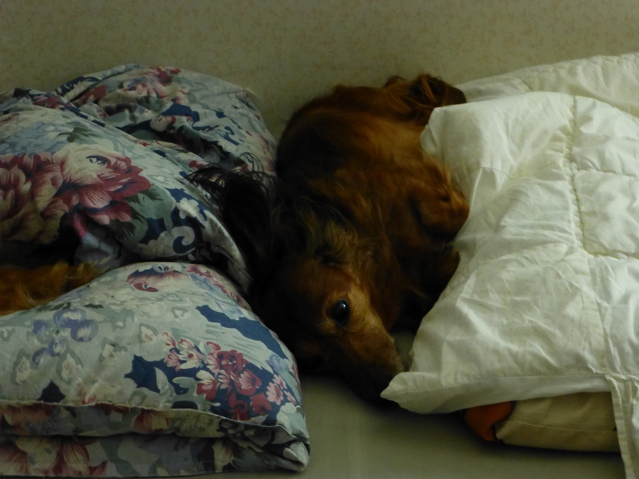 上は去年の今日のちびた。大好きな羽根布団とクッションの間にいますね。セラほどではないですが、狭いところが好きでしたね。下の写真は、一昨年の5月22日、同じ日の写真。セラは小生のにおいが好きらしく、小生のにおいを着けたもの置いとくと、そこに顔を突っ込んで寝てます。ちびたはそのようなことはなく、とにかく母セラにくっついて寝るのが好きでした。左の写真ですが、セラが左のテレビの台の柱にくっついて寝ていてもちびたは後からやって来て必ず柱とセラの間に割り込んでぎゅうぎゅう詰の状態で寝るのが好きでした。右の写真では、セラが小生の作衣の中に顔突っ込んで寝ていて、ちびたはやはり壁とセラの間に入って寝てます。セラが先に亡くなった時にちびたはどうなってしまうんだろうと思ってましたが。。。まあ、そのセラを探し回る姿を見なくてよかったかな。。と、ずっと思ってます。