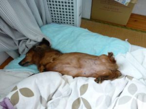 14:57のちびた。。熟睡してます。。小生、休みだったんでしょうね。。一緒にお昼寝ってところですかね。。