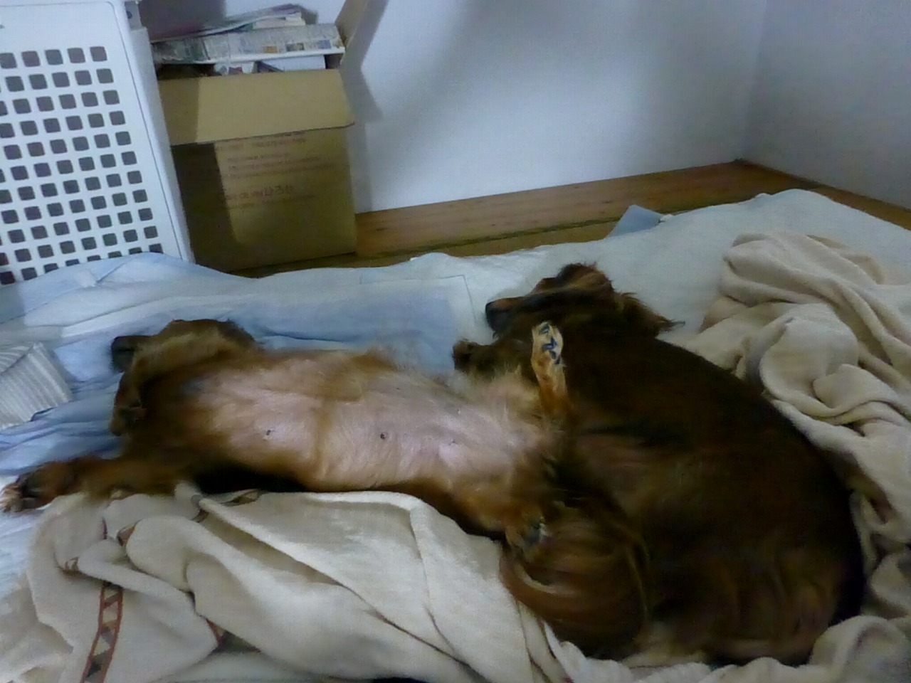 今日の写真。。まずは、朝3:09の写真。。夜中も仰向けで寝てますね。
