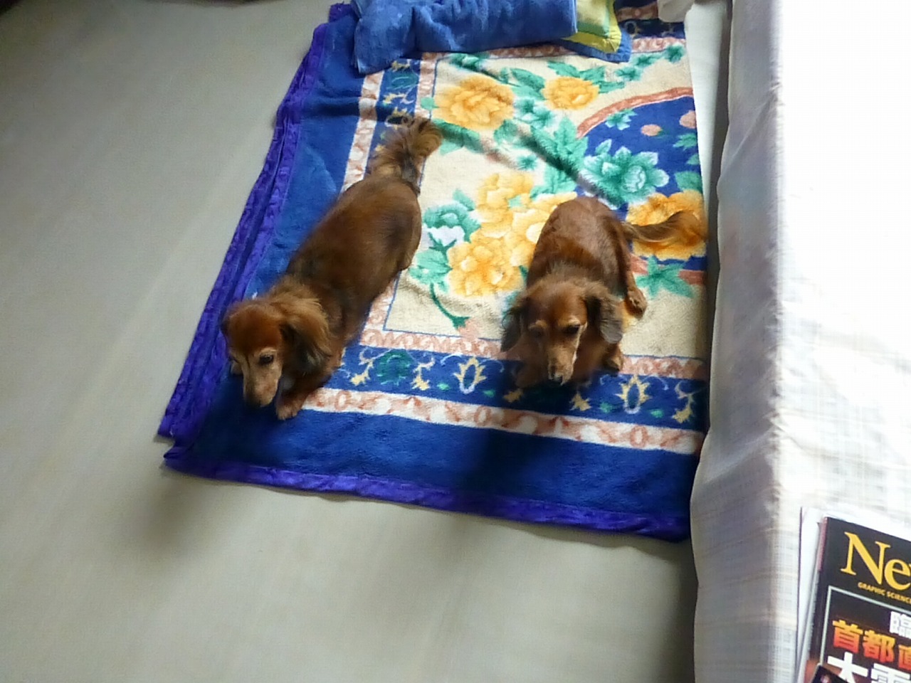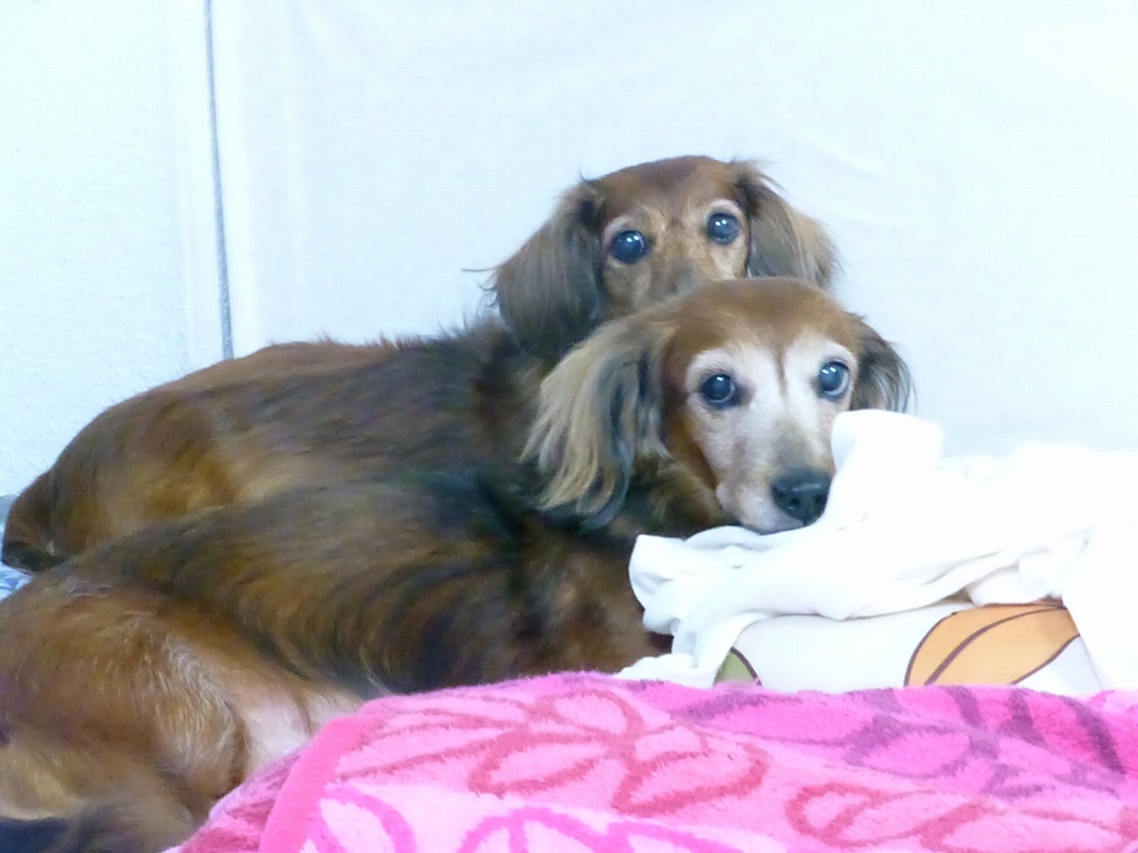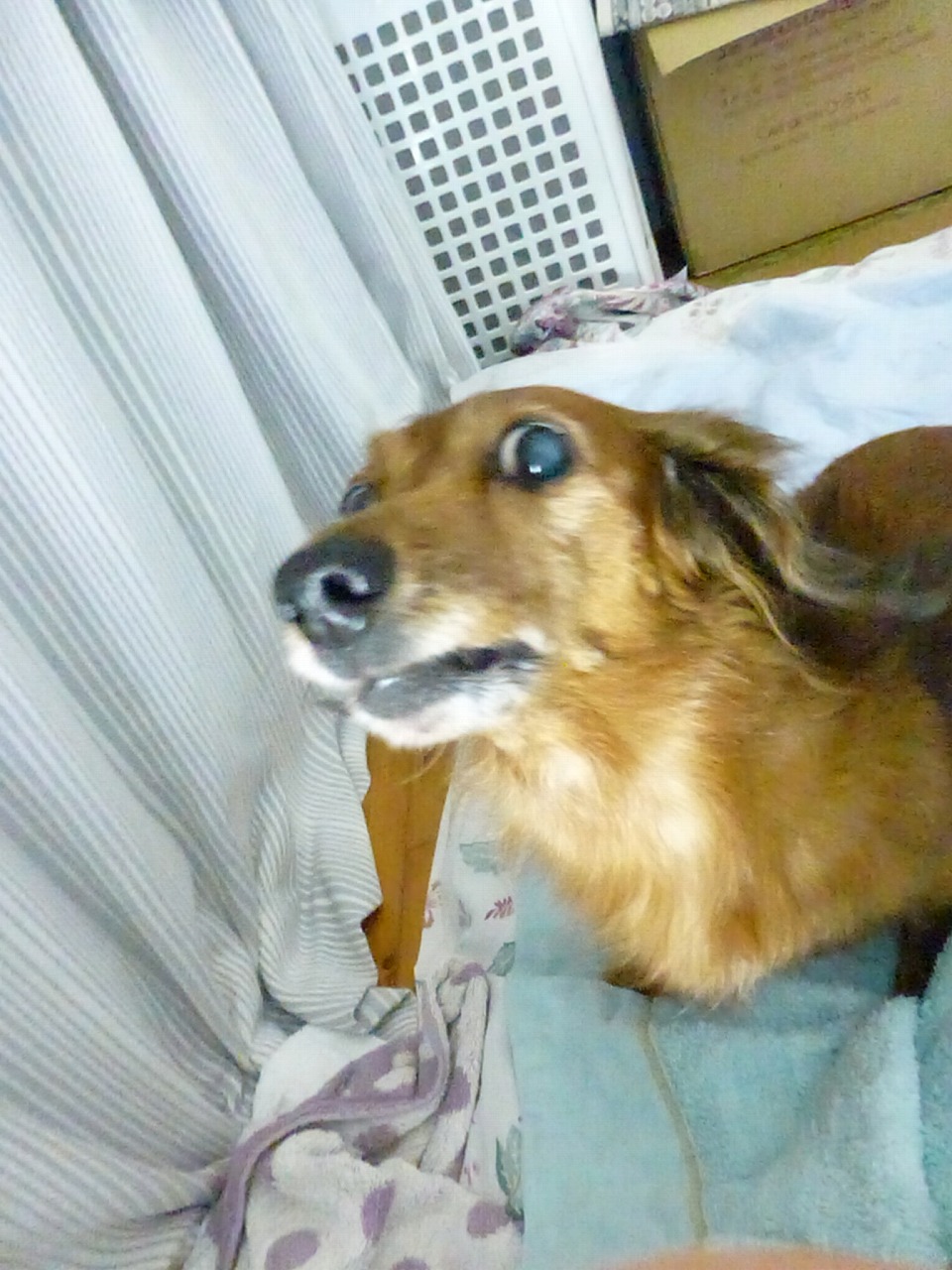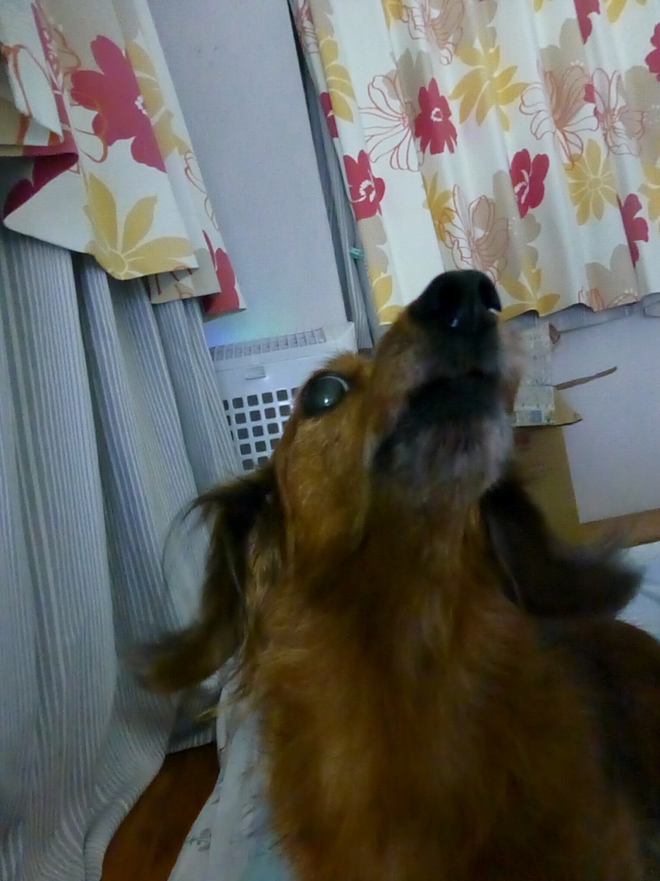 1日朝、動画撮ってます。。セラがチビタを手で小突いてますね。。。その後、撮影したのがこの写真。。吠えていたんでしょうね。。吠えているとき写真撮るとだいたいこんな姿勢です。