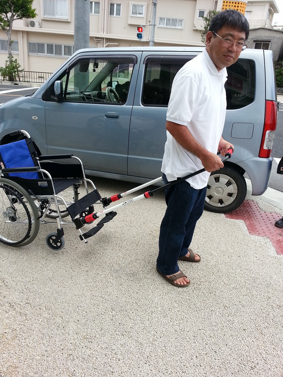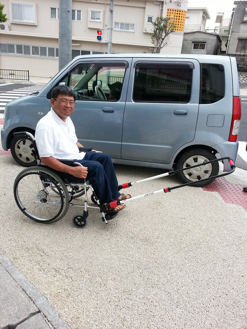 坂の途中に自宅がある患者さん用に、牽引型車いす補助具 JINRIKI を見てきました。。