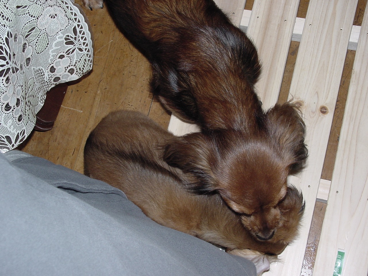 平成15年1月8日の生後3ヶ月のチビタとセラ。。この頃は、兄弟わんこはいなくなっていたのかな。。チビタとセラのコンビの写真しかありません。チビタがセラに突っかかっている写真が多く。。どちらが親分か、主導権争いしていたと思います。いつもちびたがやっつけられていて。。その後は、反抗期おさまってましたが。。時々、けんかしてましたね。。