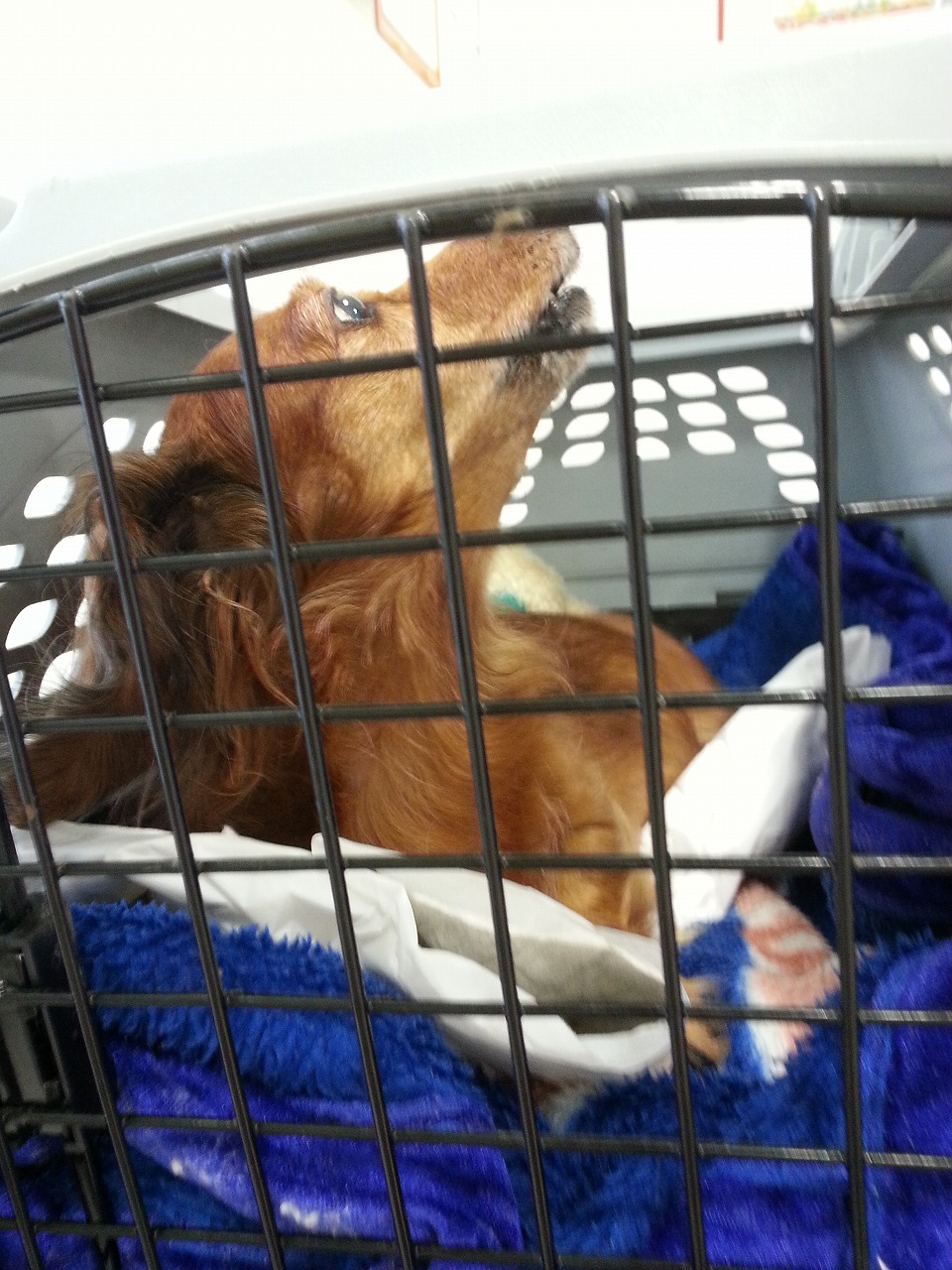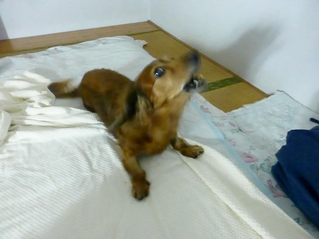 ここからが、本当の写真、昨日3日の写真。。。動画で、とってもほえてますね。。結構、長い時間ほえてます。。元気そうなんだけどなあ。。これは、移動のときにケージの天井があいているので、ほえてますね。。