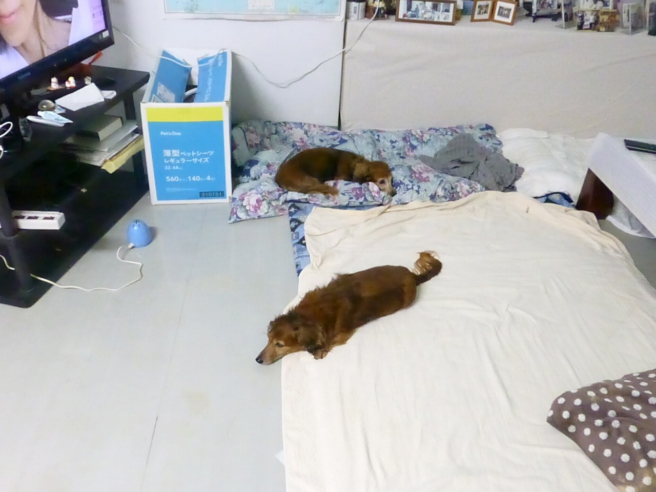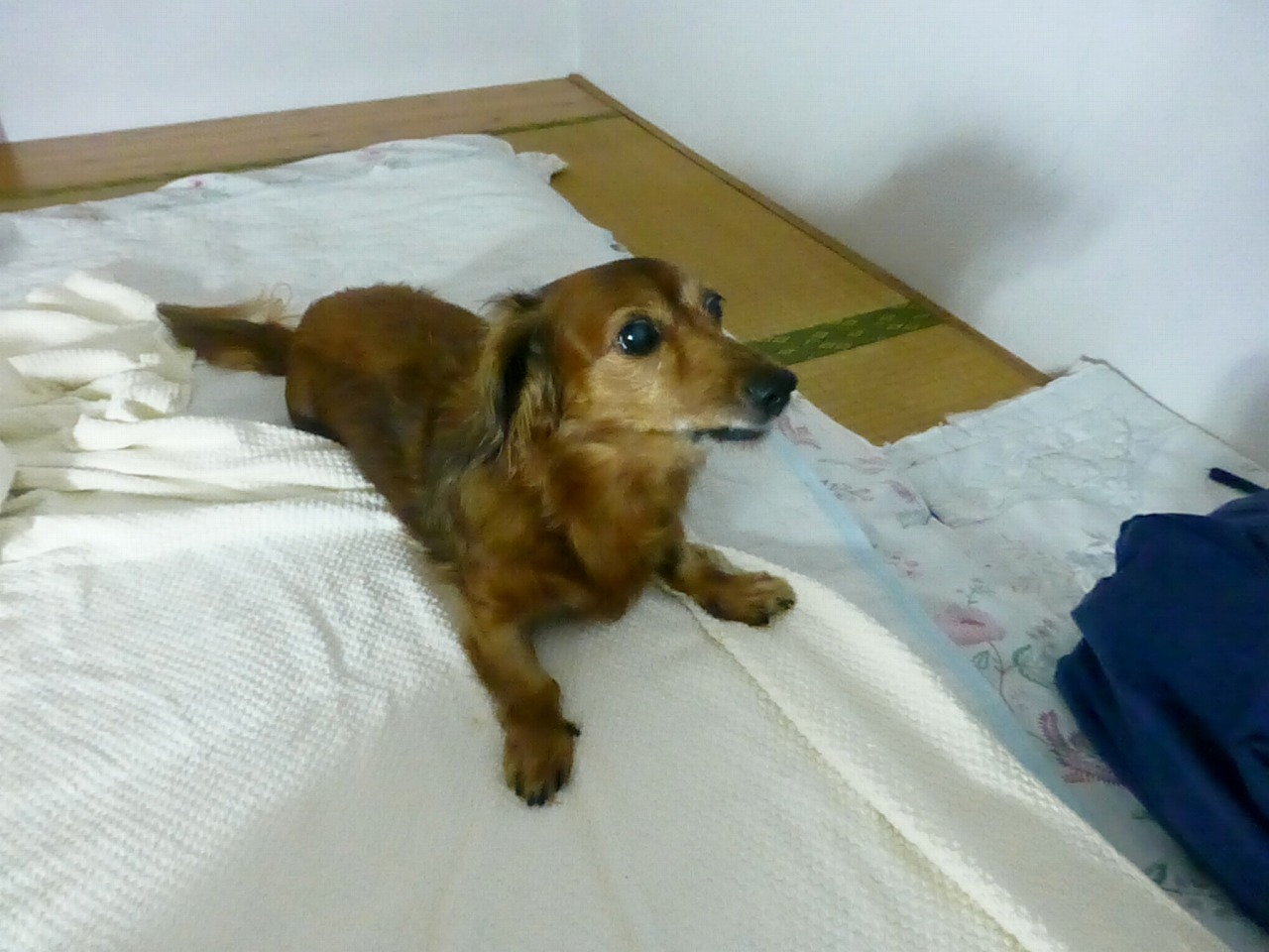 この写真後、いつものように床を一生懸命なめてますね。25日40枚くらい写真とってます。この床なめてたのと、若い頃、百斤の中国製の黄色いアヒルのおもちゃの噛みすぎで薬剤取り込んで病気になったのかなあ。
