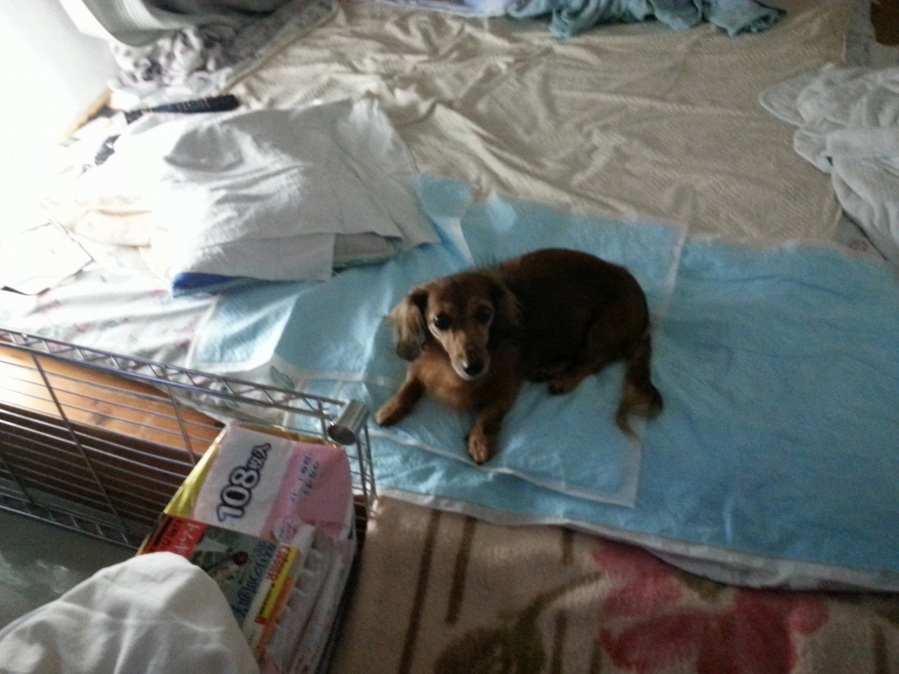 今日の写真が、下です。。左側は、携帯の写真。この位置で、デジカメでも動画撮ってますが。。。こちら向かってキャンキャン言ってます。。元気なんだよなあ。。右は、お昼の写真ですね。。