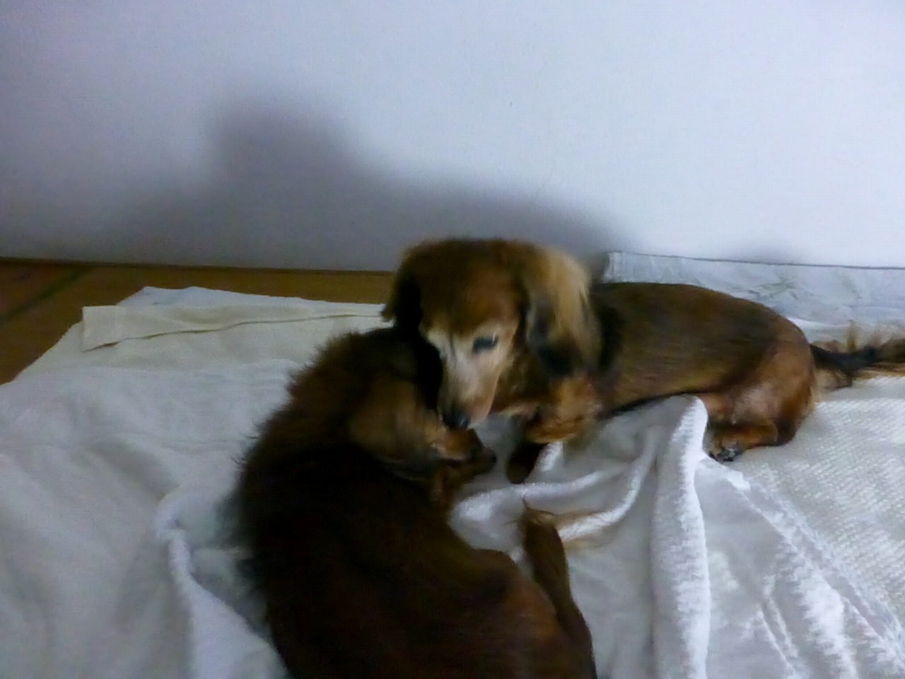 今日は、5:55から、この位置関係でしきりに鼻をぶつけ合ってますね。。動画で撮ってます。このころ、セラのほうから、ちびたによくちょっかい出してましたね。